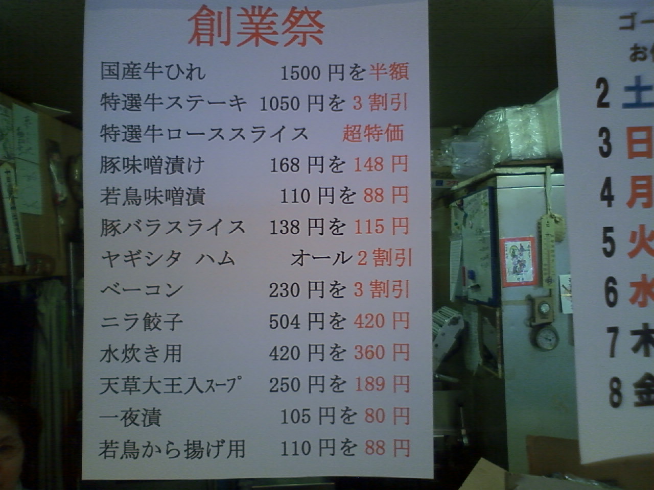 携帯でご覧になっている方は、画像が見難いと思いますが、牛肉・豚肉・鳥肉・ハム類・加工品・惣菜etc.ご期待に添えるように頑張って特売しているので、是非、店頭でご確認下さい。